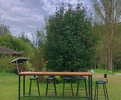 硕大的果实与未成熟的绿色水果在安静的院落中摇曳,幸福的气息萦绕在这里。朋友们正围坐在一起,享用烧烤的美味,饭菜的香味仿佛疗愈了心灵,让人胃口大开。