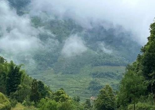 山顶的梯田在薄雾中显得格外梦幻,犹如一场奇妙的梦境。白色的雾气彷如轻纱,环绕山峰,使得村庄更显古老与温馨。