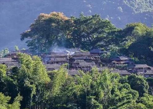 一个古朴的村庄坐落在竹林中,袅袅炊烟自屋顶升起,空气中弥漫着令人熟悉的食物香味,光照金黄的瓦片映衬着大地的景色,一切显得如此亲切。